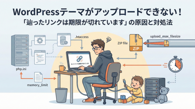 WordPress でテーマをアップロードしようとして、「辿ったリンクは期限が切れています。」というエラーに出会ったことはありますか?ConoHa VPS × Ubuntu で WordPress を構築した直後、人気テーマ「Cocoon」...